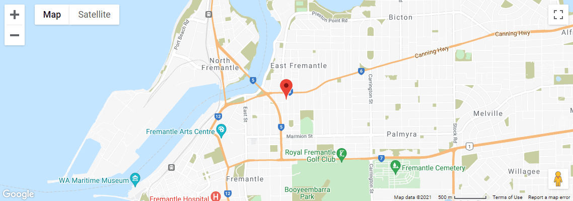 We are located near the intersection of Canning and Sterling Highways. Situated just behind The Larger and Foodworks on May Street. If you turn onto May Street from Canning Highway, we are located on the RIGHT. There is parking for small cars at the rear of the building. Access is via the driveway on the RIGHT.